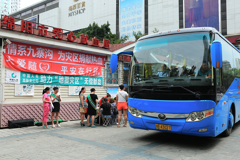 8月11日早上8點(diǎn)30分,獻(xiàn)血人員滿懷激情,乘坐公司大巴車,分別前往綿陽市中心獻(xiàn)血點(diǎn)和公園路愛心獻(xiàn)血屋,擼起袖子為九寨溝傷員獻(xiàn)熱血,助力災(zāi)區(qū)共渡難關(guān)。